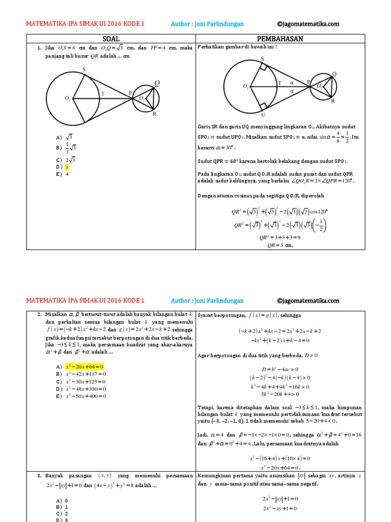 Soal dan Pembahasan Simak UI Matematika IPA 2019 adalah topik yang akan kita ulas kali ini. Hai sobat skul kali ini kami akan membagikan sebuah artikel yang kami harap bisa bermanfaat bagi kalian semua yang datang ke blog ini. MATEMATIKA IPA SIMAK UI 2016 KODE 1 Author.