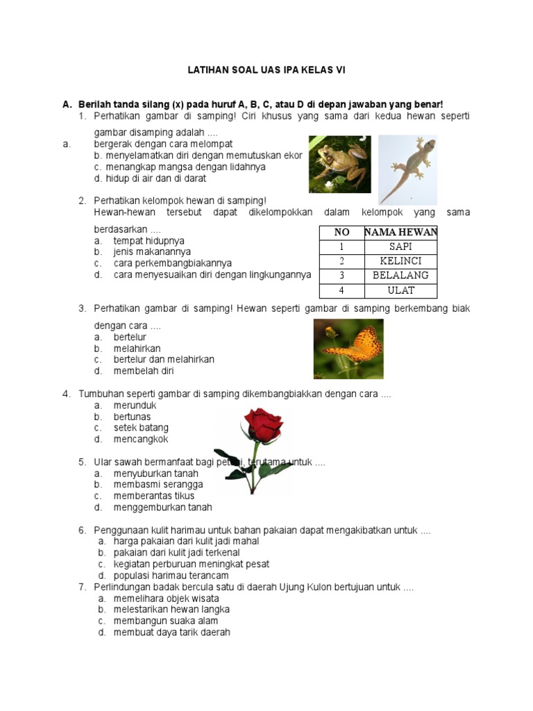Contoh dan jawaban UAS IPA SAINS Kelas 6 SD atau MI IPilihan Ganda 1. Pada F2 dihasilkan 20 anak kelinci. 45 Contoh Soal UAS IPA kelas 6 SDMI dan Kunci Jawaban - Halo adik adik yang baik pada kesempatan yang baik ini kakak ingin membagikan beberapa contoh soal yang mungkin adik adik butuhkan nah soal kali ini adalah soal Ilmu Pengetahuan Alam kelas VI SDMI pada semester genap.
