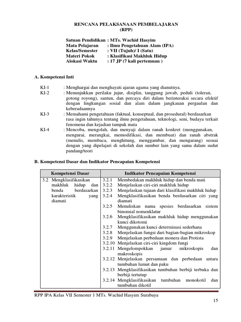 Rpp Ipa Kelas 7 Bab 2 Klasifikasi Makhluk Hidup