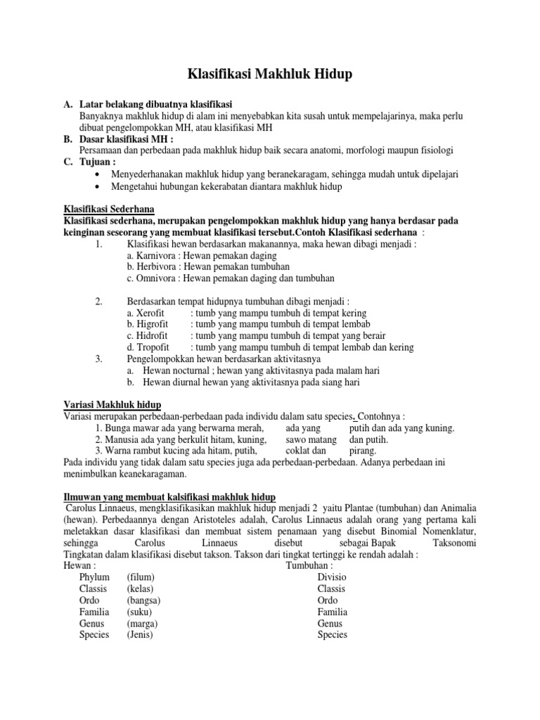 Rangkuman Ipa Kelas 7 Bab 2 Klasifikasi Makhluk Hidup Portal Edukasi
